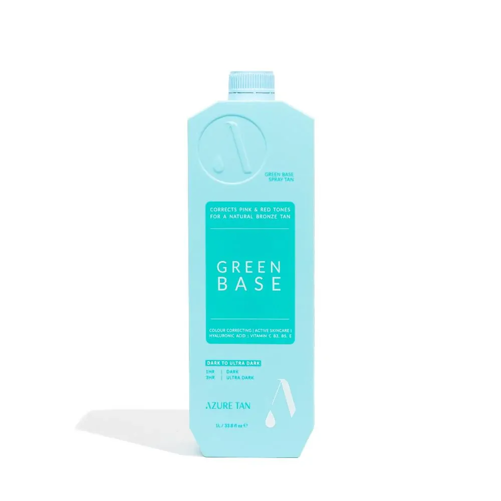 Azure Tan Green Base Spray Tan colour corrects pink & red skin tones to eliminate any orange and give an olive brown skin finish. Extremely dark results will start to develop from 1 hour. Leave on for up to 3 hours for the deepest tan. This product also doubles as a skincare treatment for the body, to help fight signs of ageing and leave the skin feeling hydrated and nourished. Suitable for face and body.