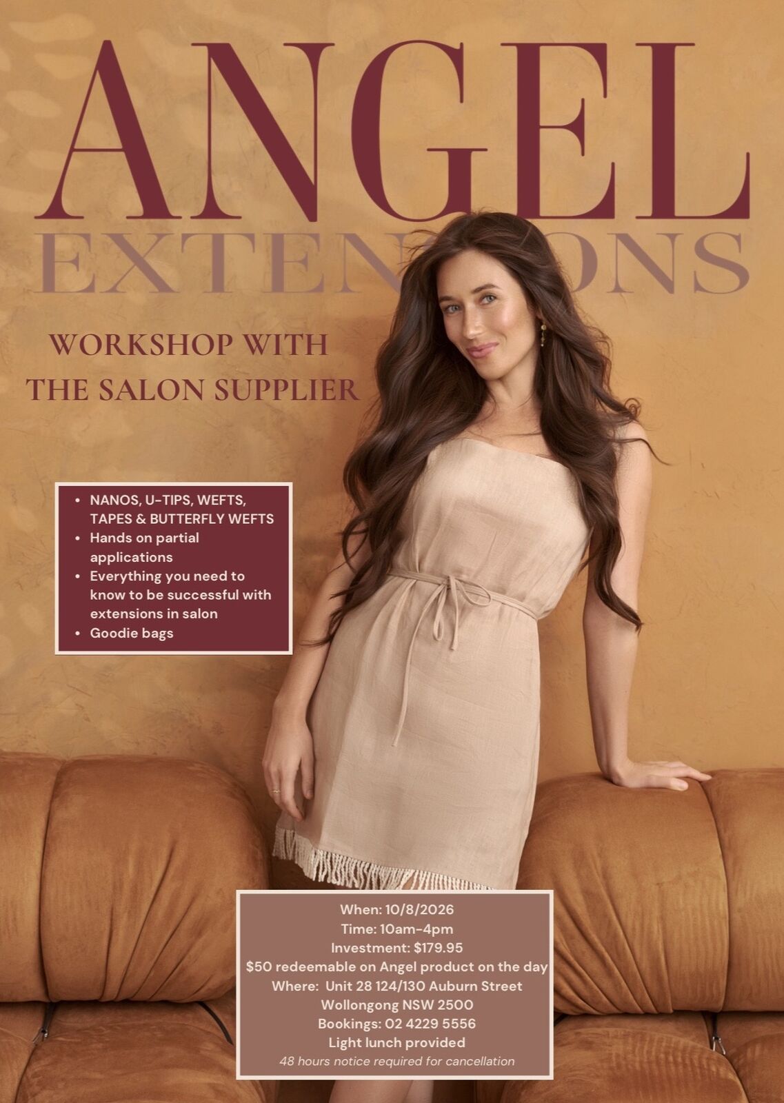 Please note this is a hands on partial application training including a goodie bag and $50 from the ticket price is also redeemable in store on the day of training within the Angel Extension range.