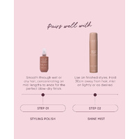 A dual purpose styling and finishing serum with amped-up shine. Enriched with our Signature Peptides and Ectoin Barrier Booster to repair and strengthen, nurturing the scalp microbiome for your healthiest hair.